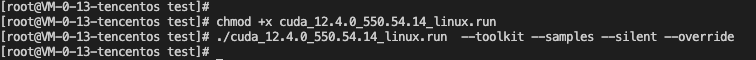 ./cuda_12.4.0_550.54.14_linux.run --toolkit --samples --silent --override