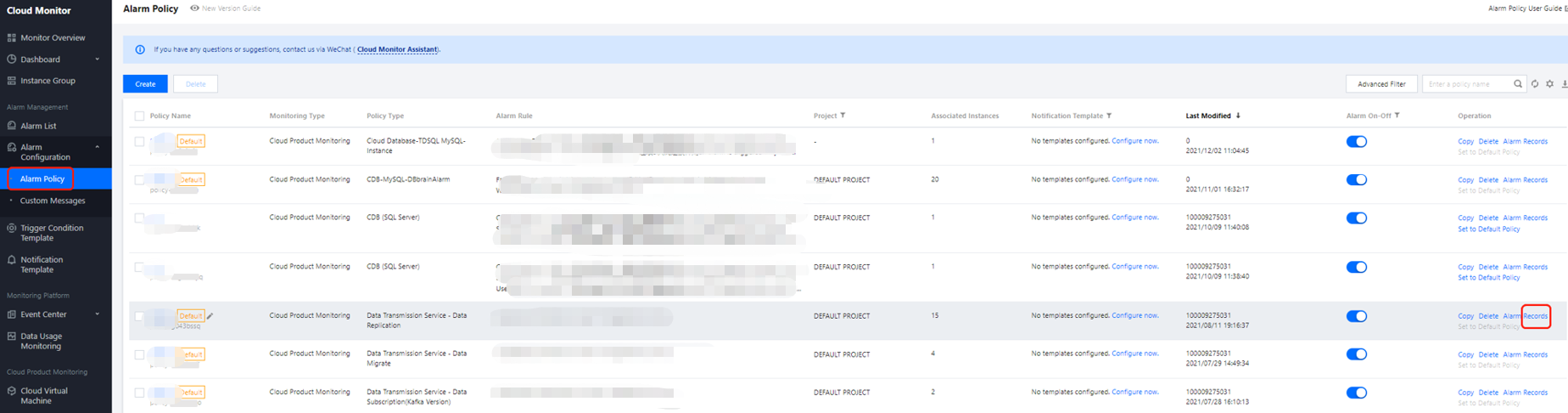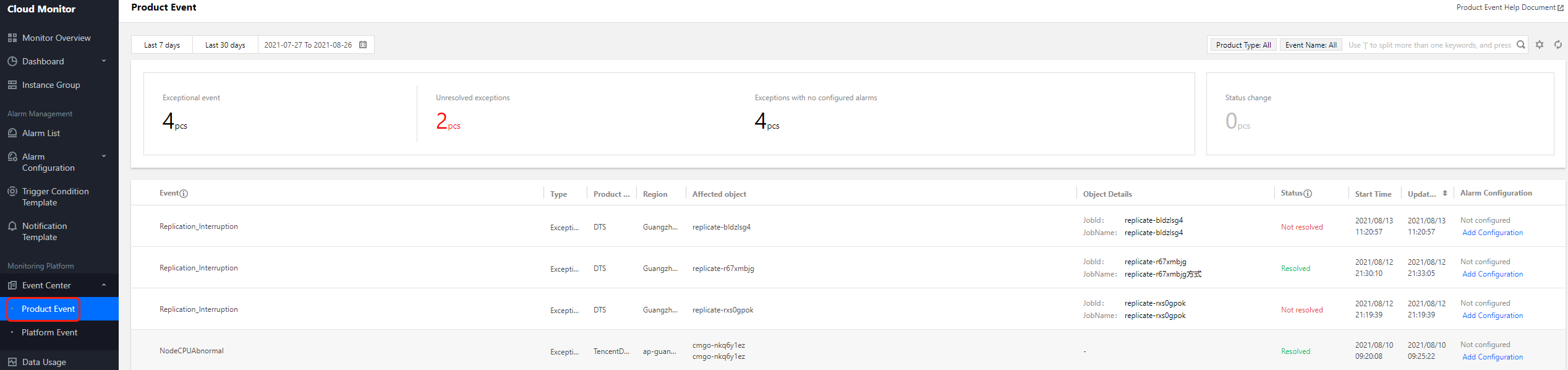 用户可以查看历史指标告警和事件告警,以便了解系统的各项指标性能。
