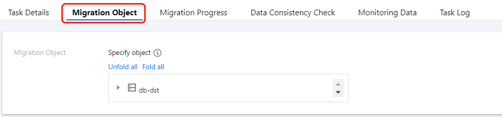 1. 登录 DTS 控制台,在左侧导航选择数据迁移页,通过以下两个方式查看任务。 方式一:在数据迁移页面,选择指定的迁移任务,单击任务名称。