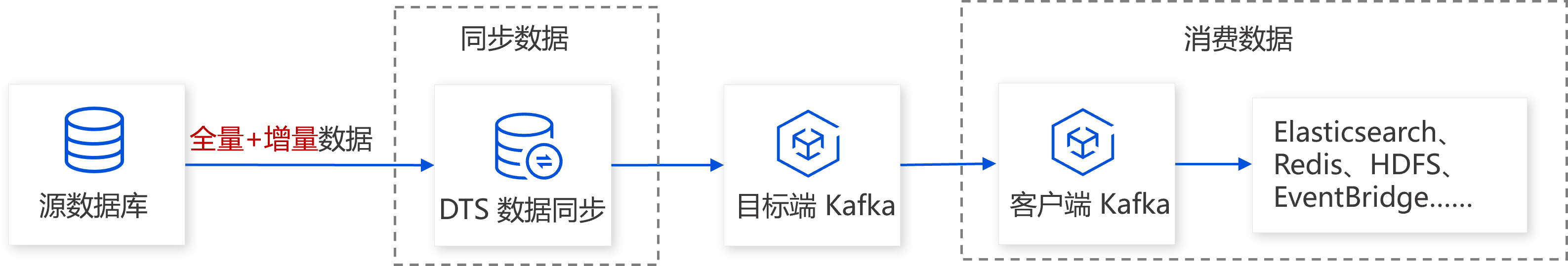 DTS 支持将源库数据投递到 Kafka,方便用户获取源库全量+增量数据,可应用于数据归档、数据分析等场景中。