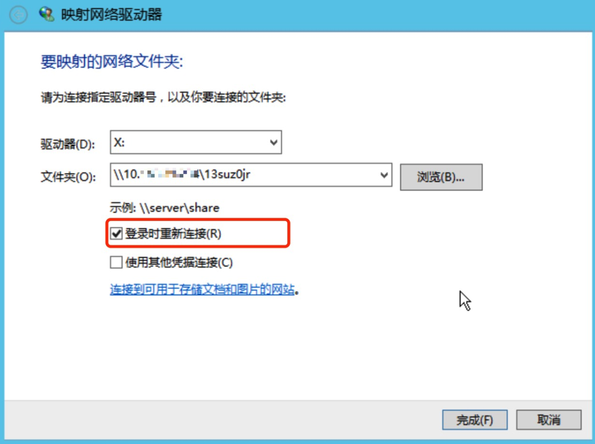 使用 NFS3.0 挂载<挂载点IP>:/<fsid> <待挂载目标目录> nfs vers=3,nolock,proto=tcp,hard,timeo=600,retrans=2,_netdev,noresvport 0 0例如:10.10.19.12:/djoajeo4 /local/test nfs vers=3,nolock,proto=tcp,hard,timeo=600,retrans=2,_netdev,noresvport 0 0