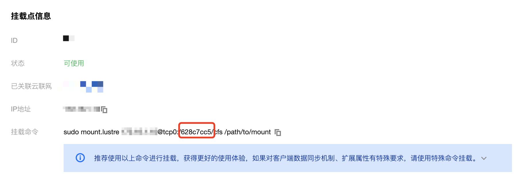 apiVersion: v1kind: PersistentVolumemetadata:name: pv-cfsturbospec:accessModes:- ReadWriteManycapacity:storage: 10Gicsi:driver: com.tencent.cloud.csi.cfsturbovolumeHandle: pv-cfsturbovolumeAttributes:host: 10.0.0.1#根据实际的挂载点IP填写fsid: d3816815#根据实际的FSID填写path: /#cfs turbo subPathstorageClassName: ""