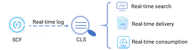 在使用云函数 SCF 进行函数计算时,会产生大量的函数运行日志,如果您需要将日志进行持久化存储、投递或消费,对日志内容进行监控告警,您可将日志投递到腾讯云日志服务 CLS 平台。如下图所示:
