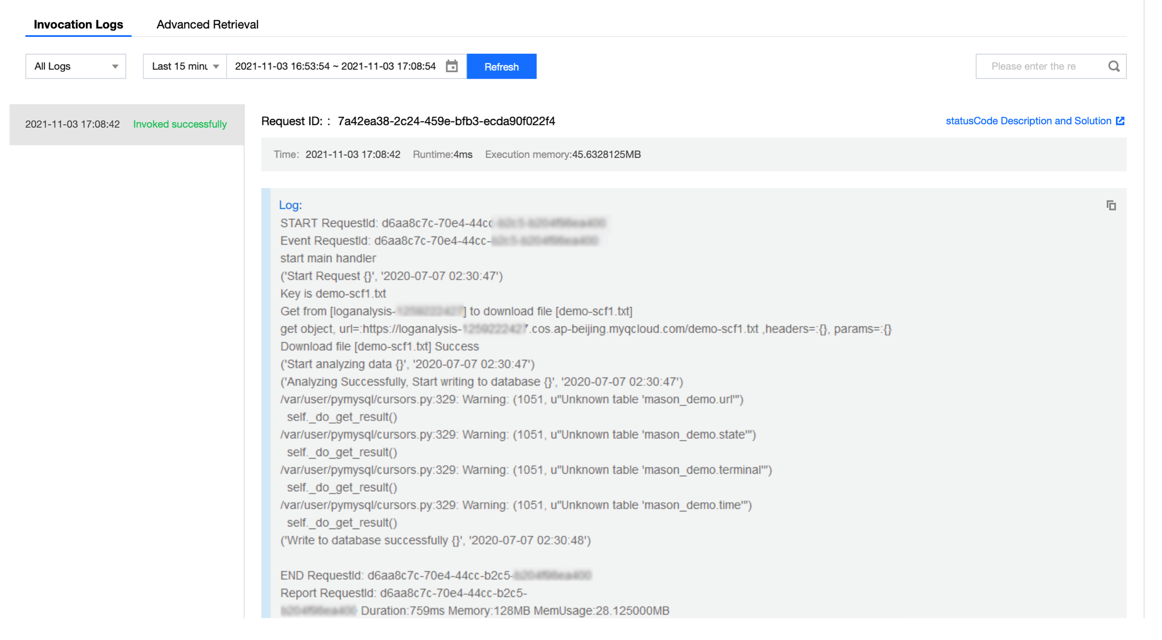 1. 下载 测试样例 中的日志文件,并解压出 demo-scf1.txt,导入至源端 CLS 服务。 说明: