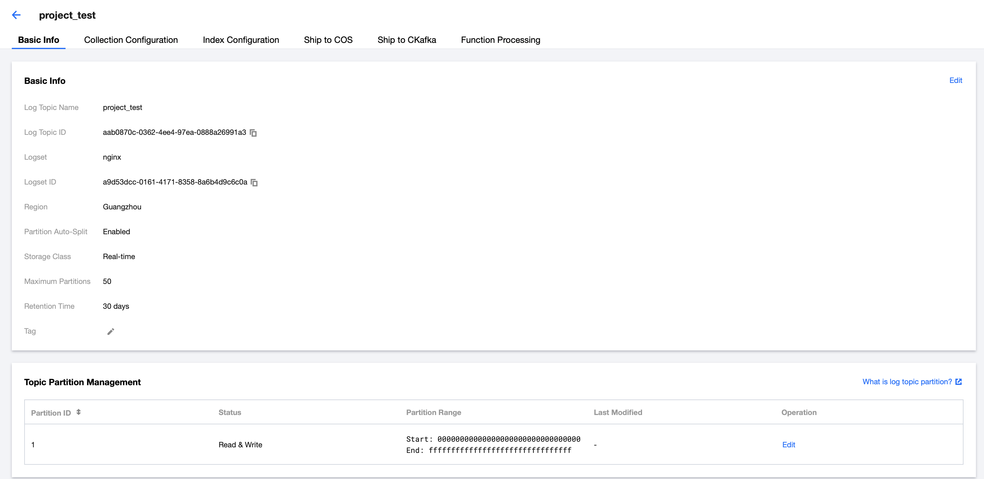 5. 日志主题新增成功,将进入日志主题管理页,如下图所示: