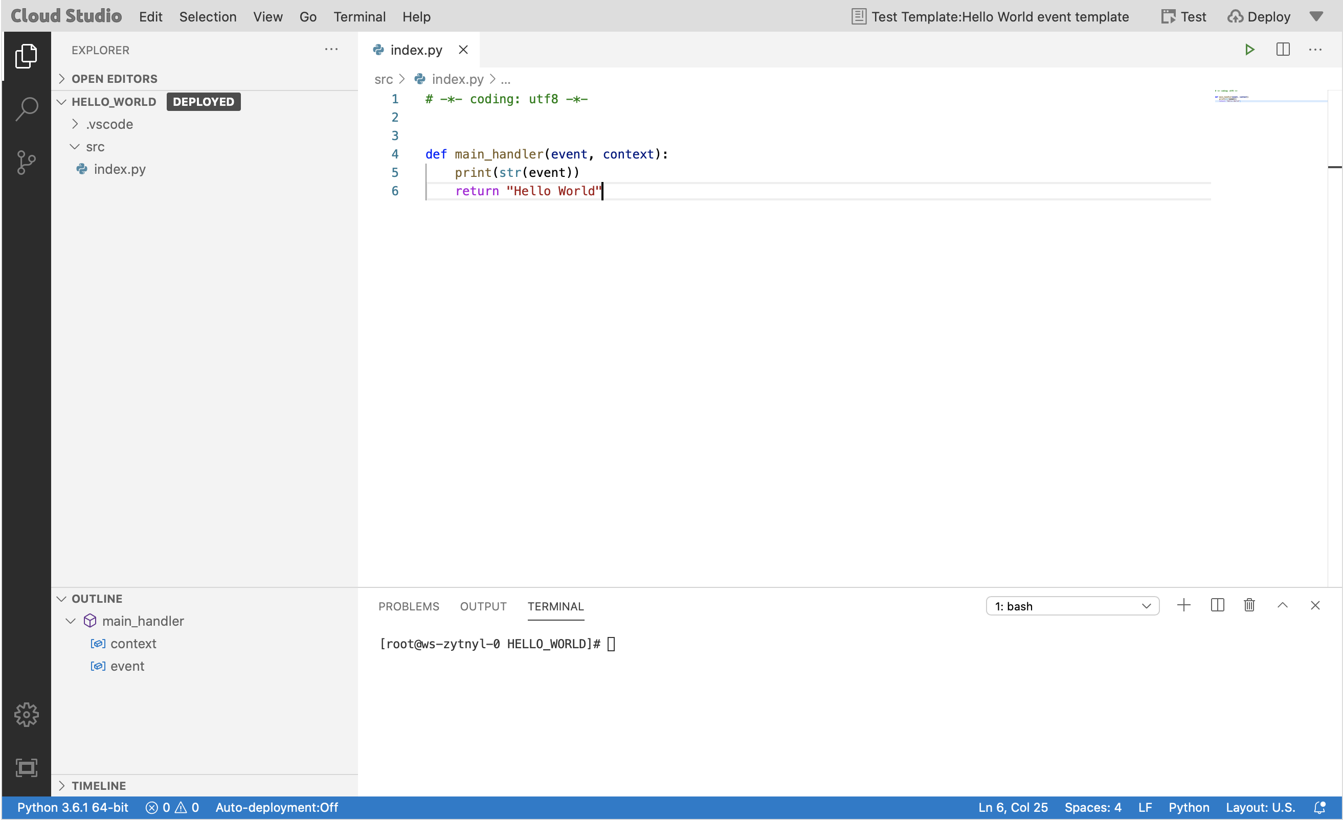 我们会为您保留 Serverless Web IDE 中的个性化配置以及代码状态,为了确保函数修改生效,请及时将修改部署到云端。