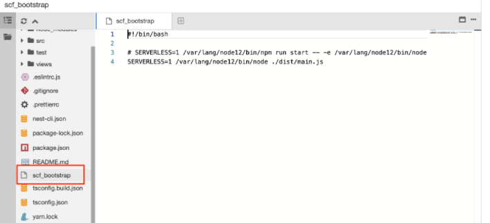 #!/bin/bashexport PORT=9000/var/lang/node12/bin/node app.js # 改为您自己的启动函数名