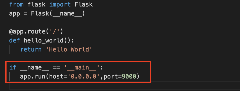 在项目目录下,新建 app.py 文件,用于实现 Hello World 应用,示例代码如下:from flask import Flaskapp = Flask(__name__)@app.route('/')def hello_world():return 'Hello World'if __name__ == '__main__':app.run()