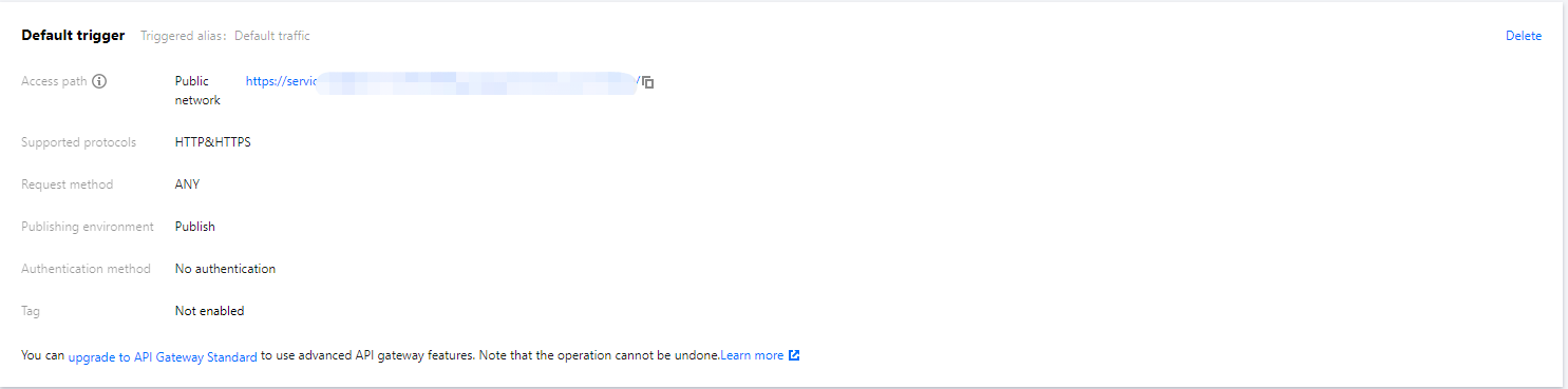 6. 单击左侧菜单栏中的触发管理,查看访问路径 URL,访问您部署的 Nuxt.js 项目。如下图所示: