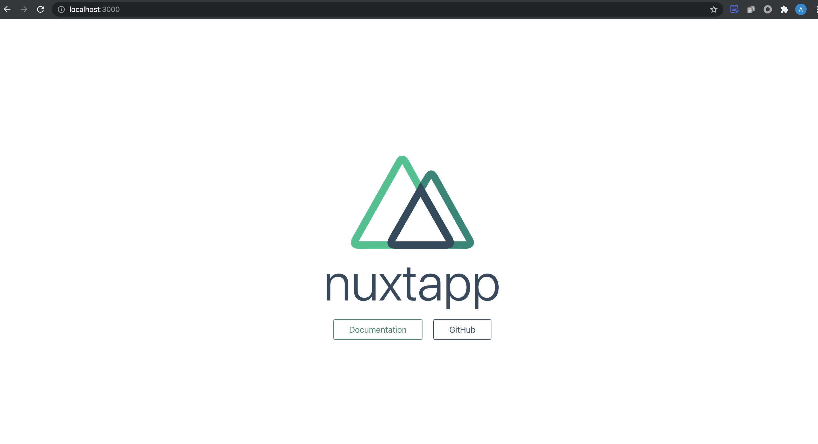 3. 打开浏览器访问 http://localhost:3000,即可在本地完成 Nuxt.js 示例项目的访问。如下图所示: