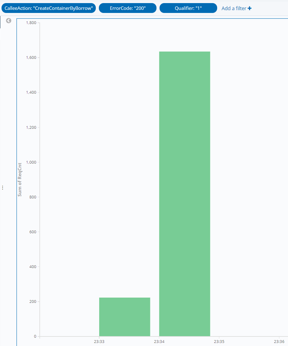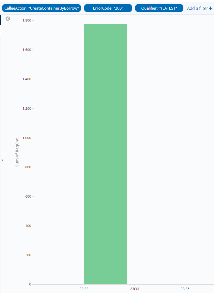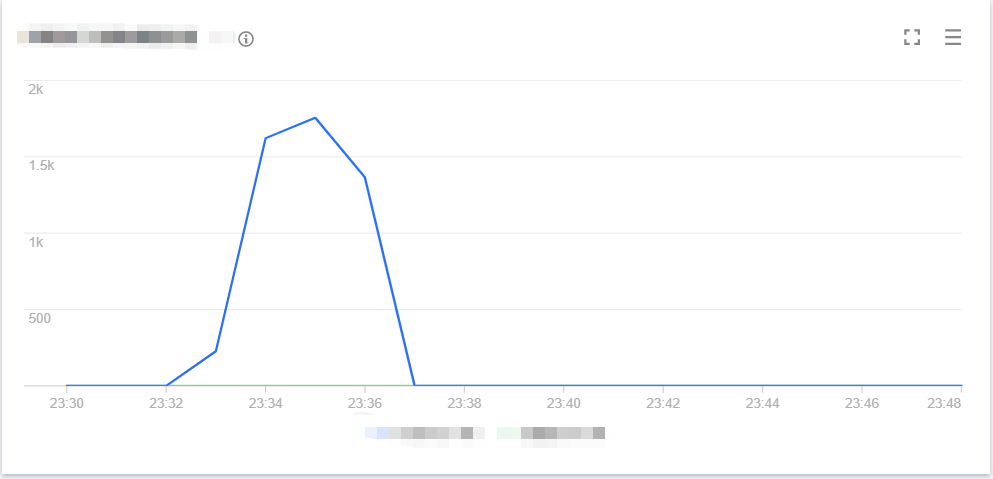 函数冷启动数据如下图所示,并发可以瞬时启动,在1分钟内达到了我们设置的 burst 为2000冷启动限制。