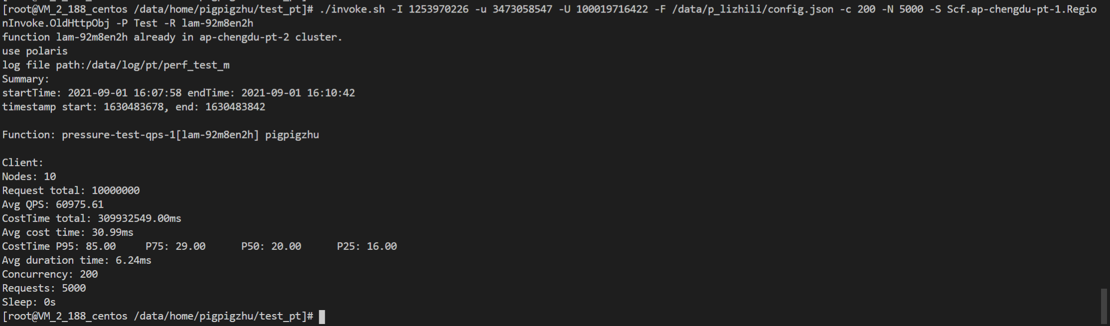 使用 go-wrk 工具,直接调用 RegionInvoke 接口。 |