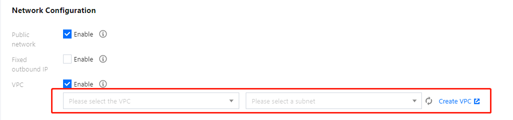 6. 如需使用 CFS 挂载能力,由于 CFS 只能私有网络访问,因此必须将云函数的 VPC 配置在与 CFS 在同一个私有网络下。如下图所示: