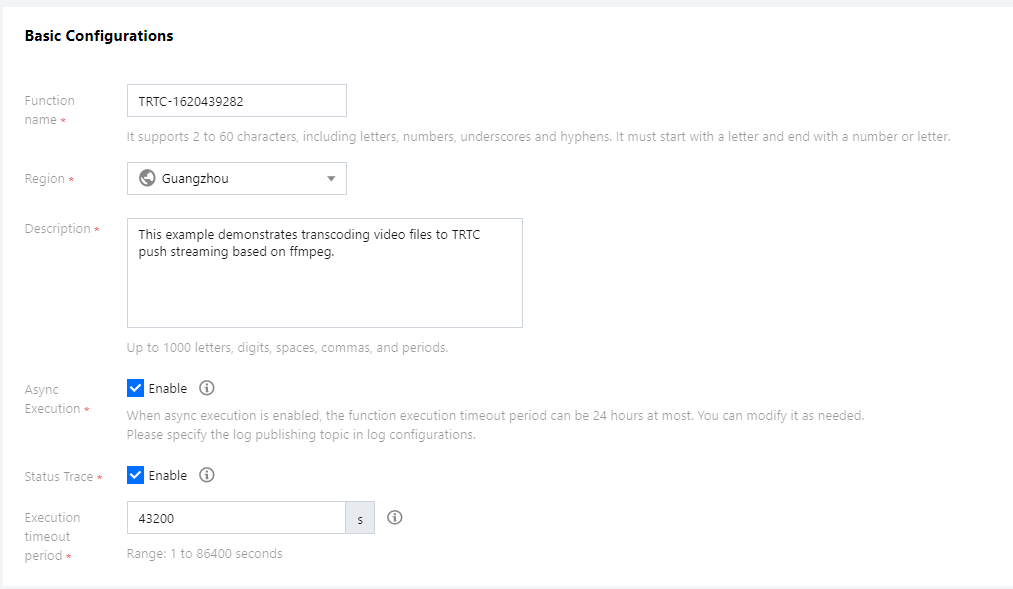 异步执行:勾选以开启。开启后,函数将以异步执行模式响应事件,事件调用无需阻塞等待处理结果,事件将在被调用后进入异步执行状态。