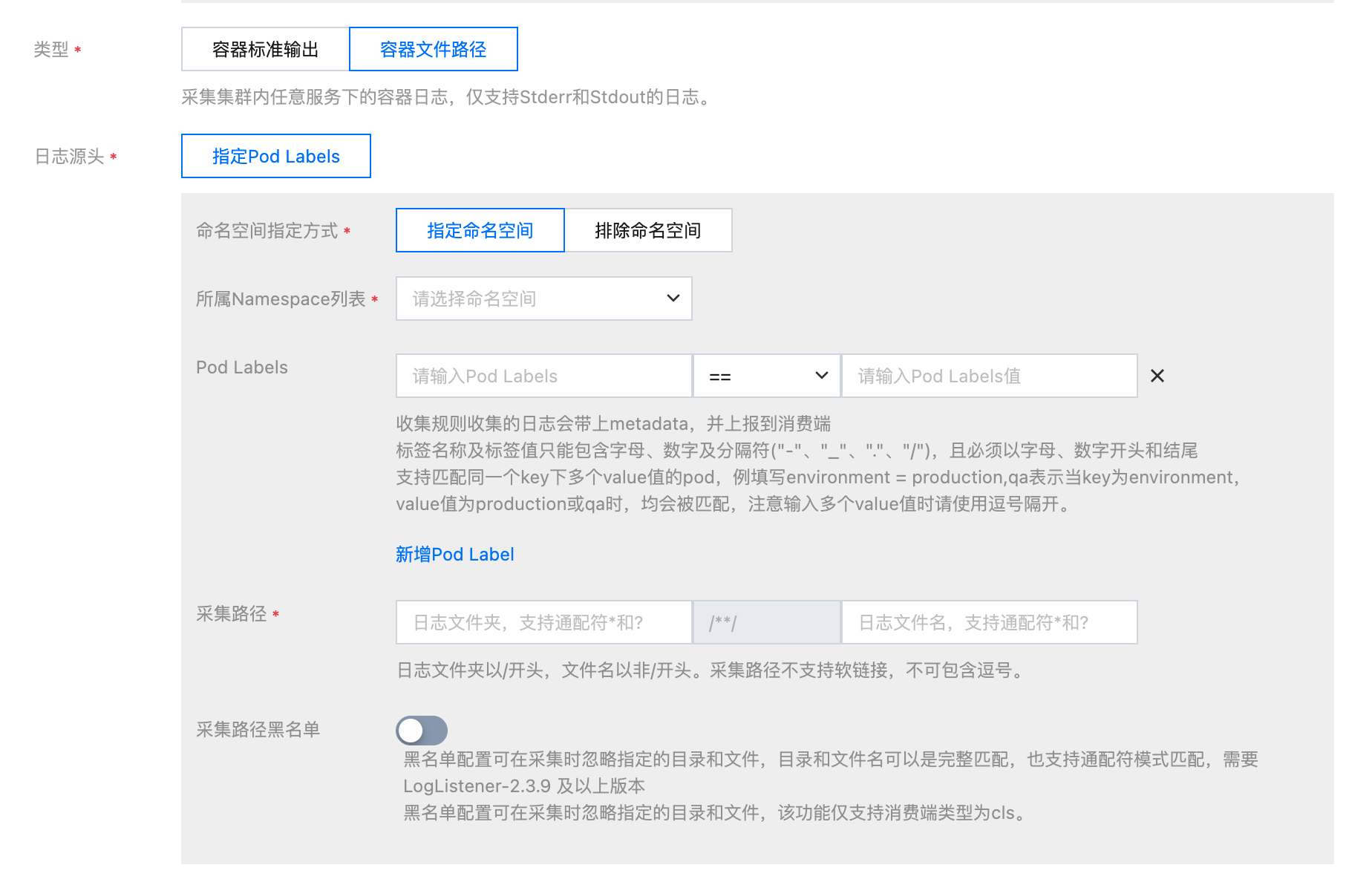 Pod Label:新增需匹配的 Pod 标签,默认采集符合此 Label 的全部容器。