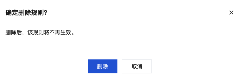 在操作栏单击删除,删除 Topic 配置的 ACL 策略,删除后该规则将不再生效。