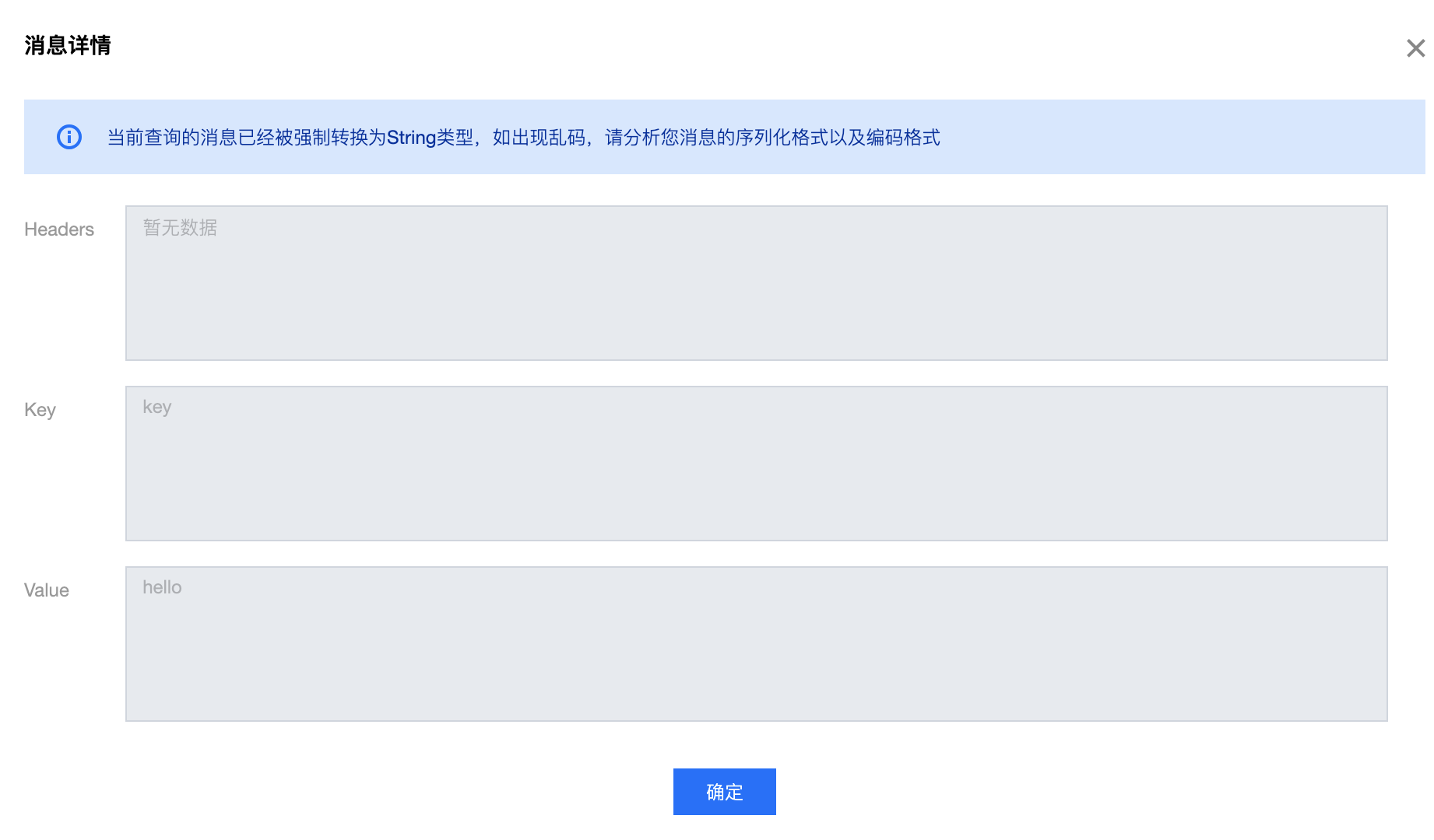 单击消息详情可查看消息的 key 和 value。