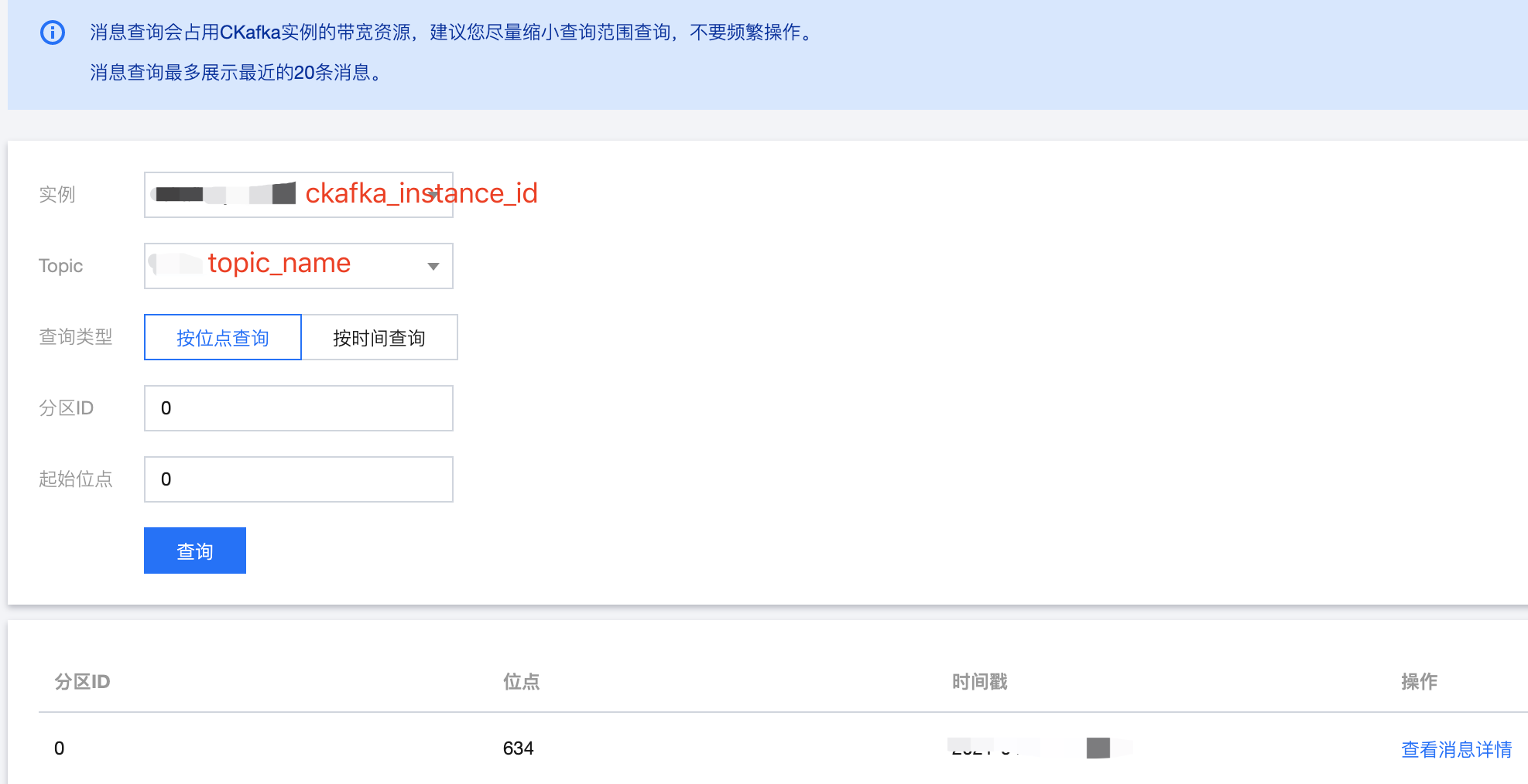 broker | 接入网络,在控制台的实例详情页面接入方式模块的网络列复制。 ![]() |