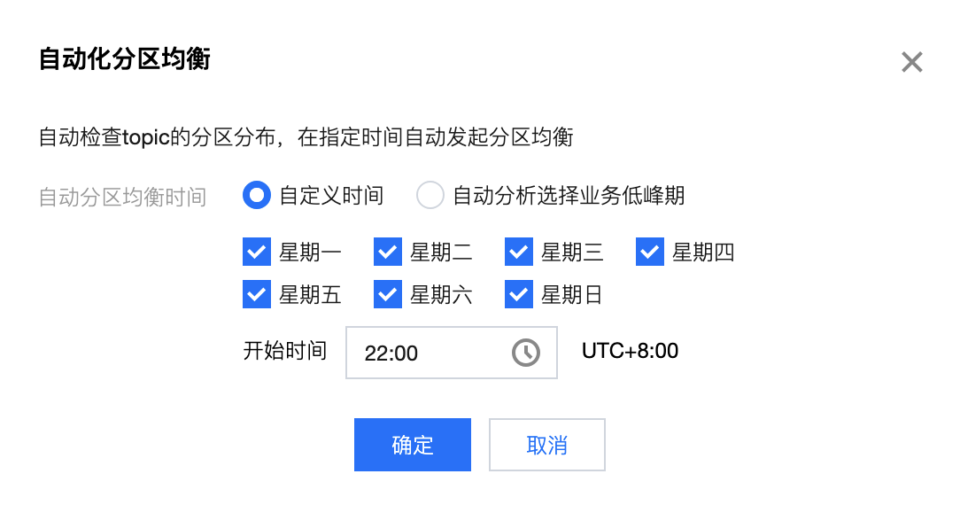 自定义时间:自定义选择发起分区均衡的时间,建议选择业务低峰期,避免对您的业务造成影响。