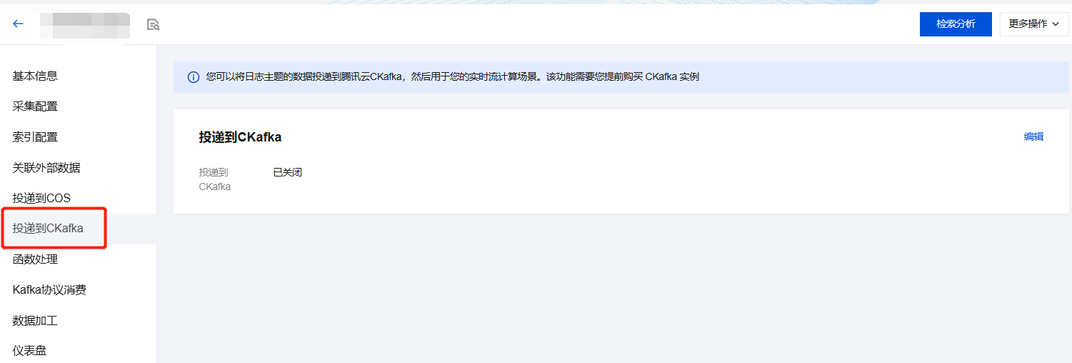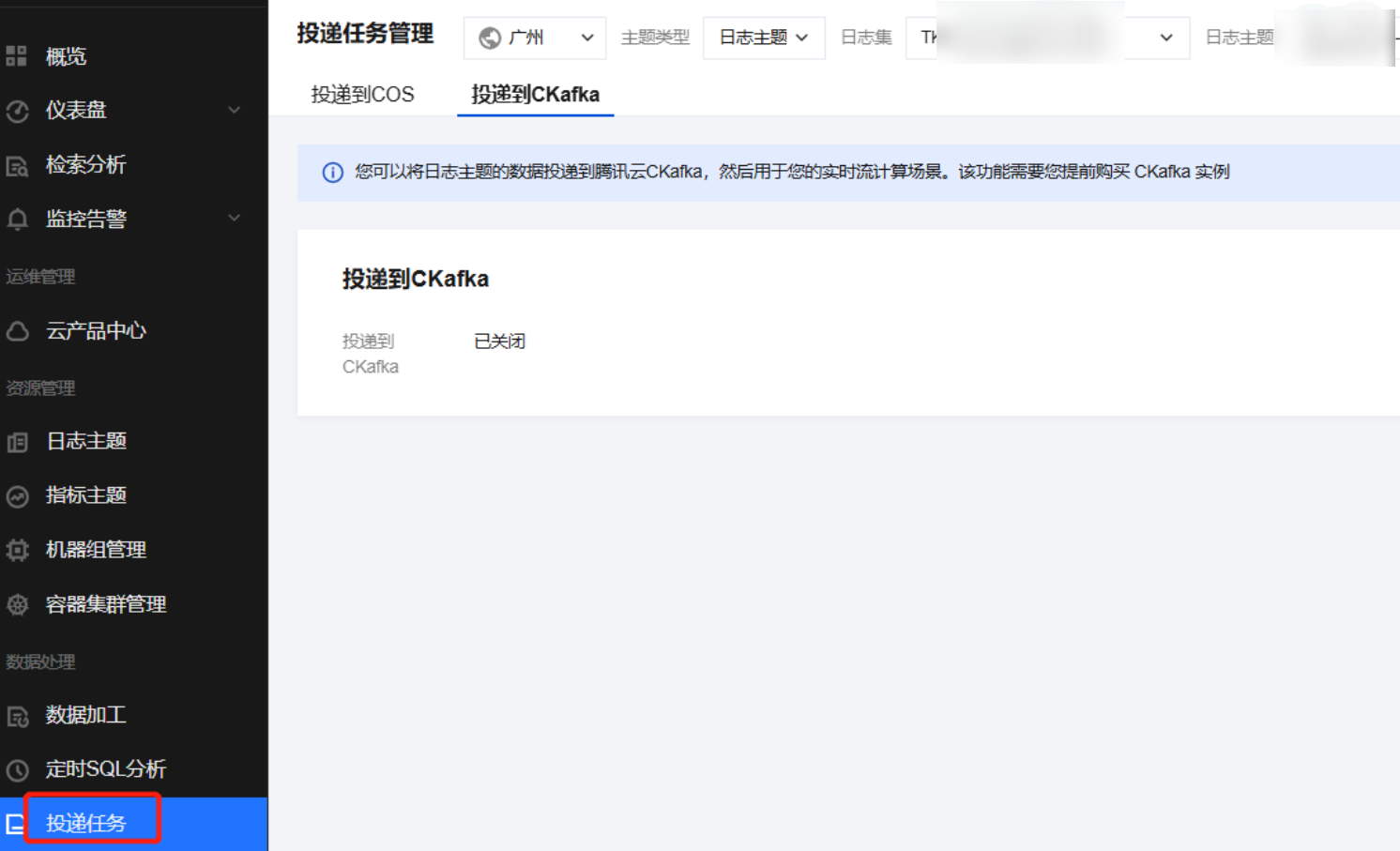CKafka 实例 | 与当前日志主题同地域的 CKafka Topic 作为投递目标 | 列表选择 | 必填 |