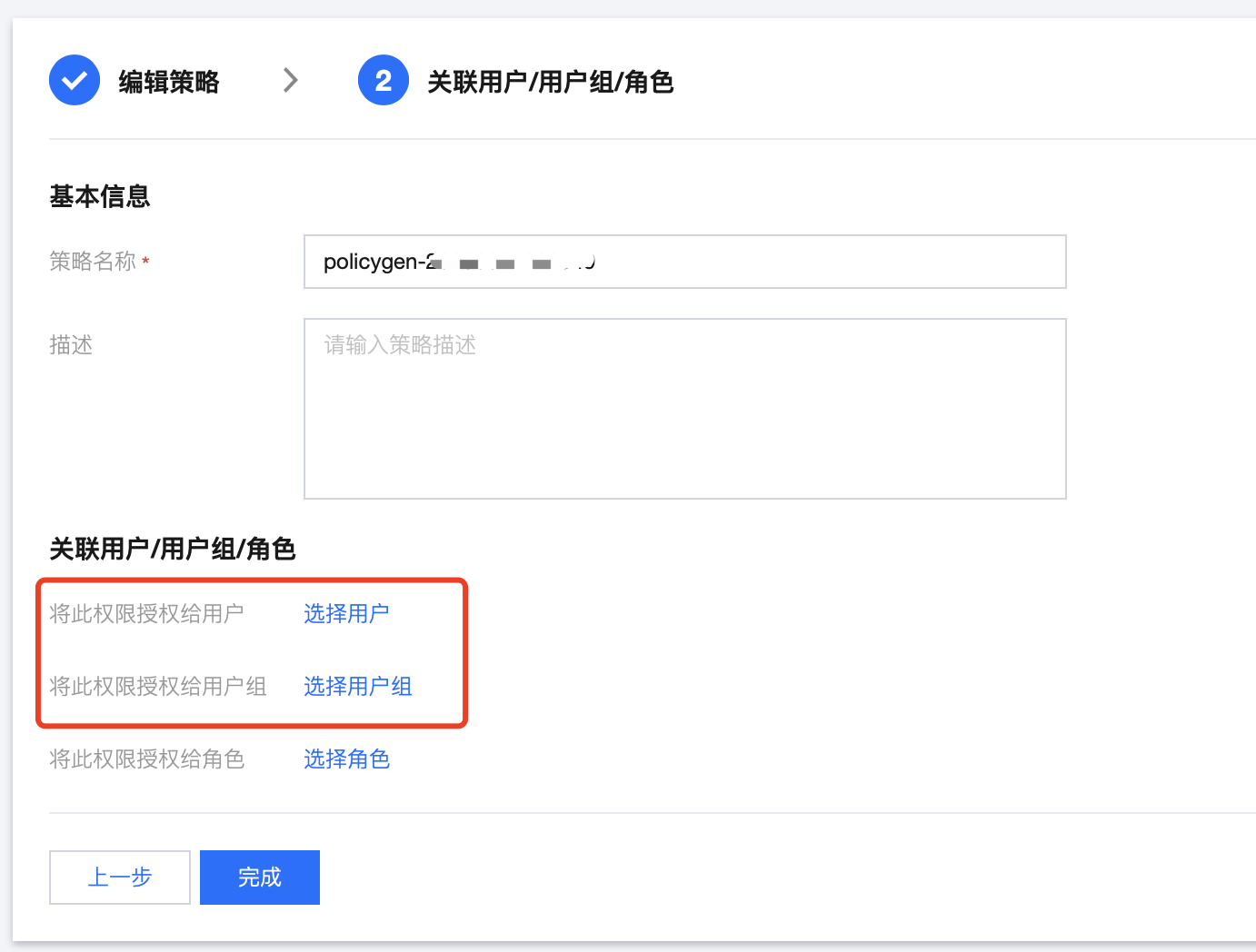 9. 单击完成,相关子账号就能够根据策略控制指定标签下的资源。