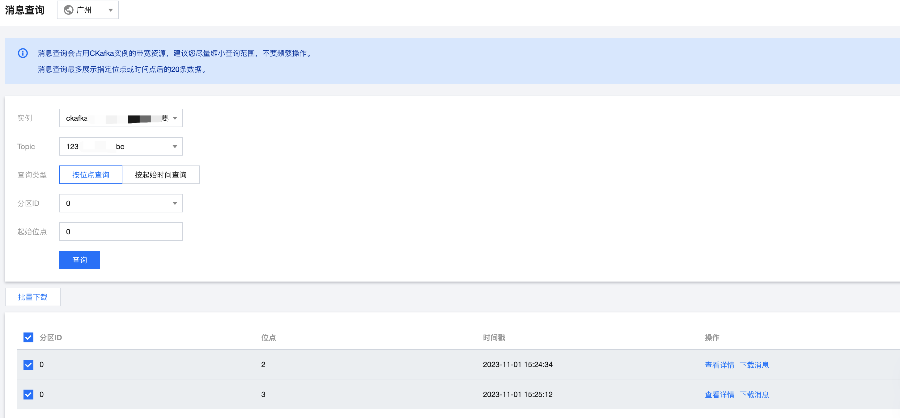两种方式查询该 Topic 下的消息信息。