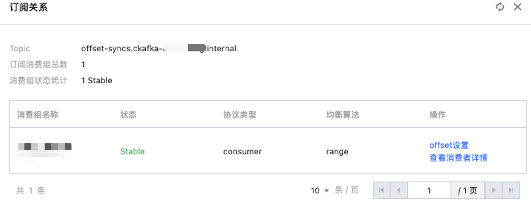 操作 | 在订阅关系页面,您可以执行如下操作: offset 设置:重置消费组的消费进度,详细介绍请参考查看和手动重置消费进度。 查看消费组详情:查看消费组内所有的消费者的详情信息,详细介绍请参考查看消费组详情。 |