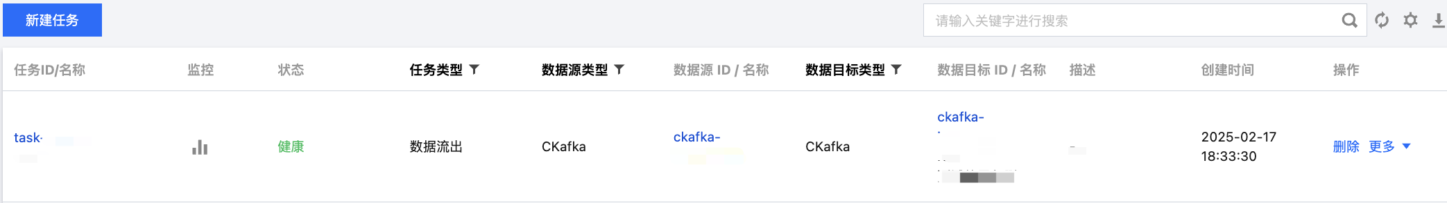 数据源 | 内网连接:腾讯云 CKafka 集群 公网连接:腾讯云 CKafka 集群/自建 Kafka 集群 跨网连接:自建 Kafka 集群/其他云厂商集群 | 腾讯云 CKafka 集群 |