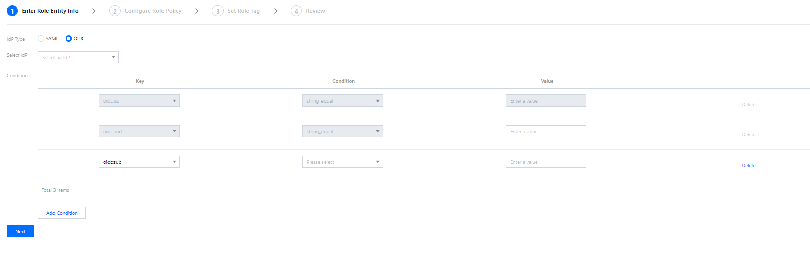 OIDC 目前支持的条件如下:
