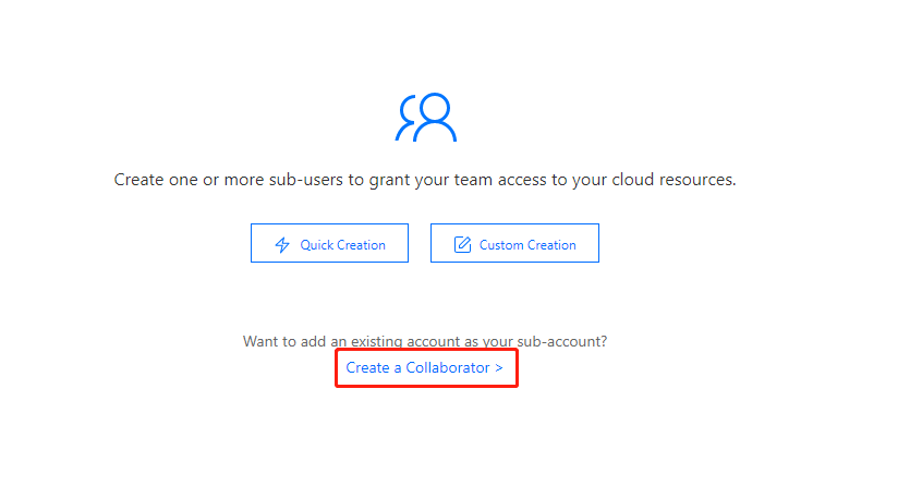 该任务指导您使用主账号或者管理员用户,在访问管理控制台创建一个子账号(子用户/协作者),并为其绑定权限策略。