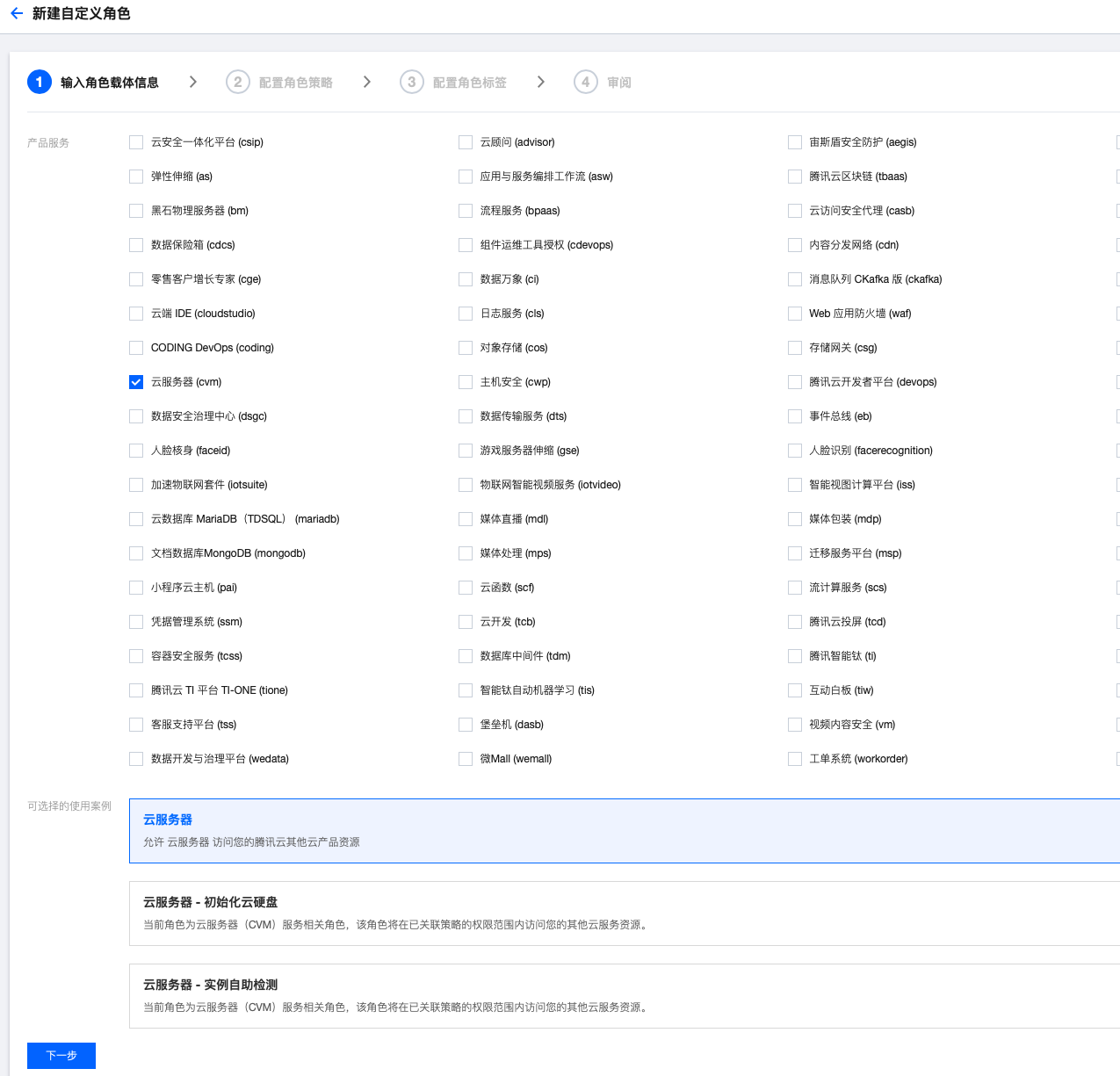 (3)选择角色载体为云服务器(CVM)。