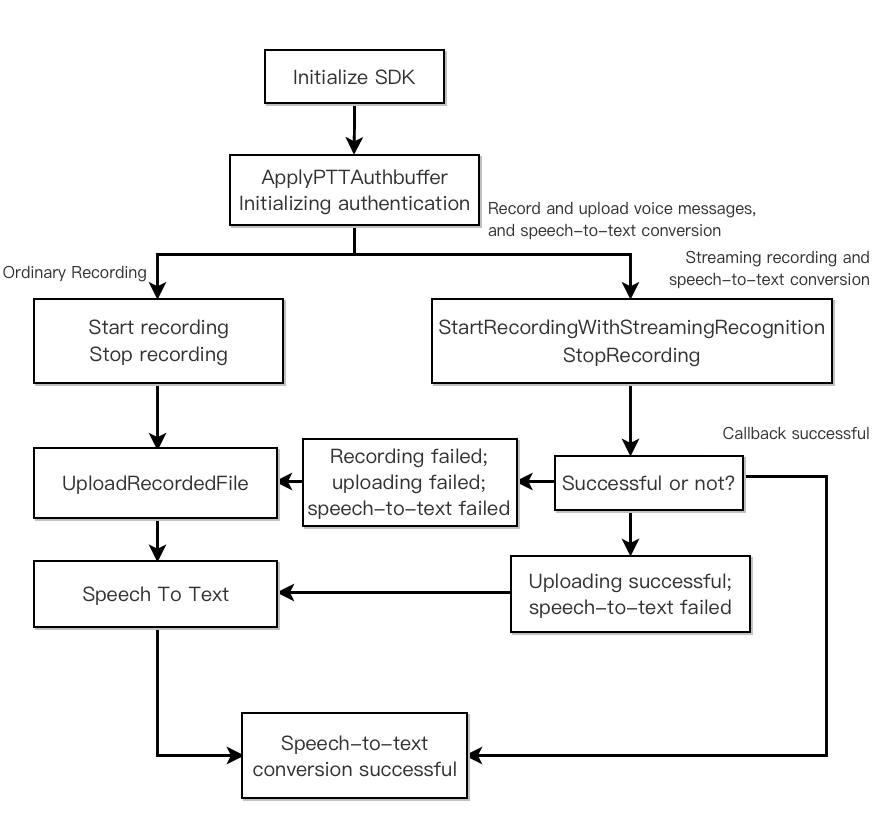 32777 | 流式语音转文本失败,但是录音成功,上传成功 | 返回的信息中有上传成功的后台 url 地址,调用 SpeechToText 接口进行语音转文字操作 |