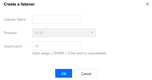 3.1 当选中 HTTP 时,仅需要输入监听端口即可,监听器会默认按照 HTTP 协议进行转发。