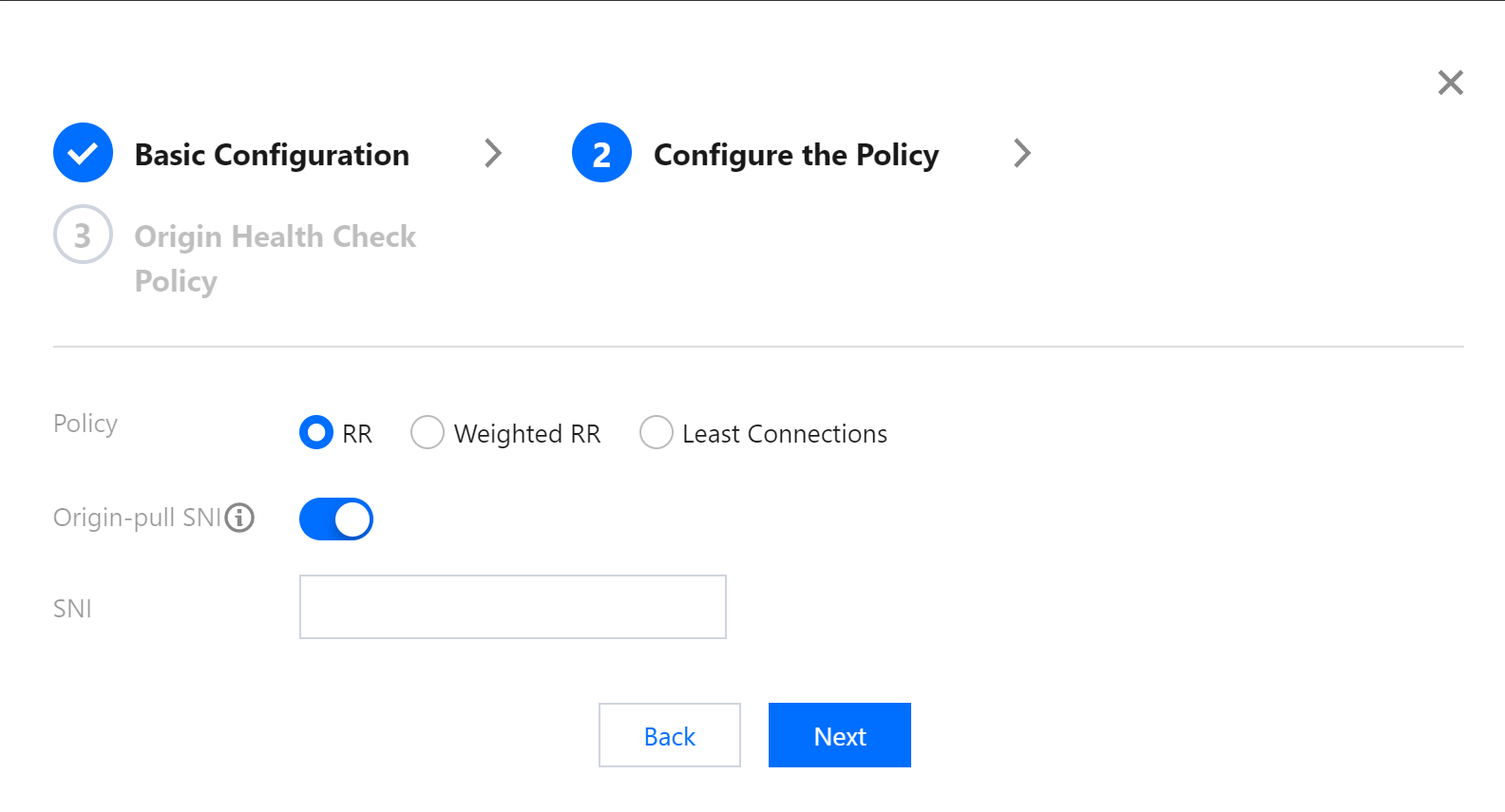 回源SNI:与源站建立SSL连接之前先发送SNI,源站根据SNI值返回对应的证书。
