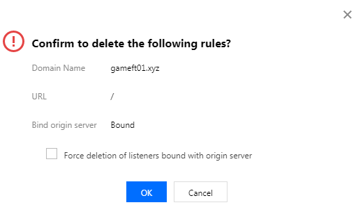 完成“添加规则”操作后,单击删除可删除规则,如果规则下有绑定的源站,需要先勾选“强制删除绑定有源站的规则”。