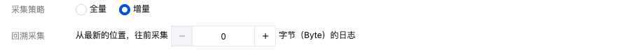 当采集策略选择为增量采集时,您可以进一步在此设置回溯采集的起始点,指定 LogListener 启动时是否从最新位置往前偏移指定字节数开始采集。
