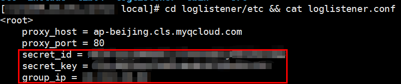 4. 请检查确认 LogListener 中密钥及 IP 标识配置信息是否有误,进入安装目录查看配置信息,命令如下: