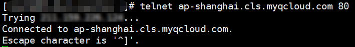 telnet <region>.cls.myqcloud.com 80