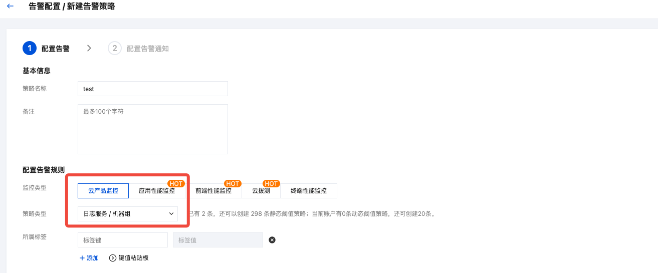 步骤1:新增告警策略