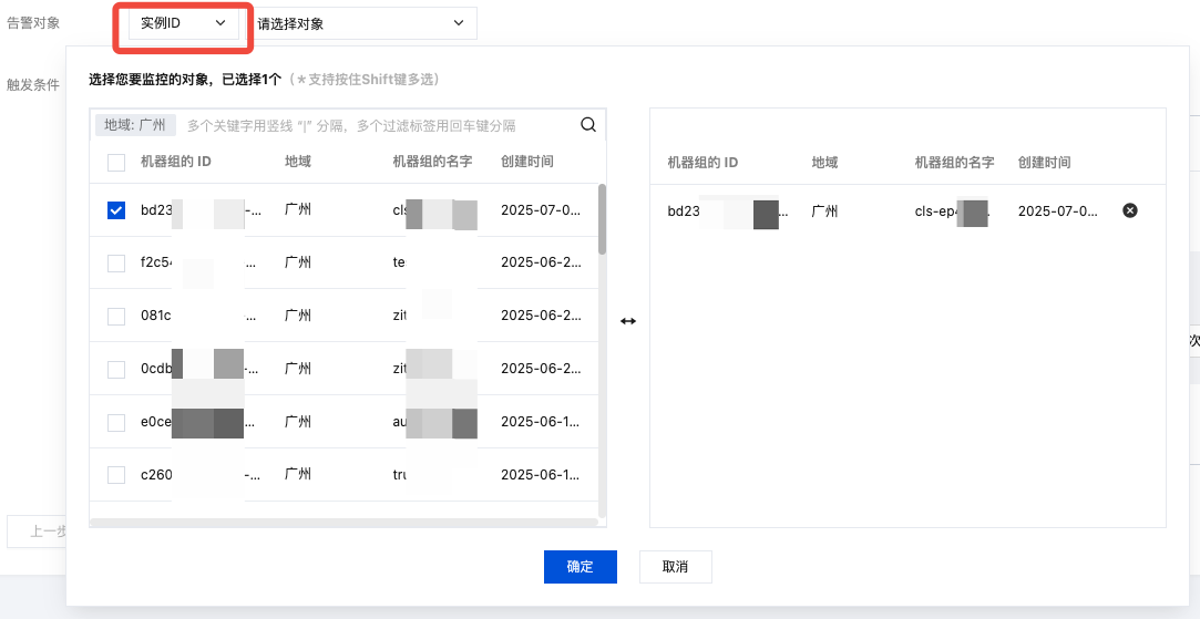 实例 ID:根据机器组 ID筛选目标告警对象。