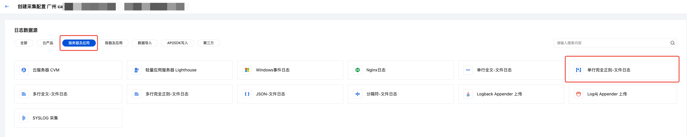 使用单行-完全正则提取模式采集日志