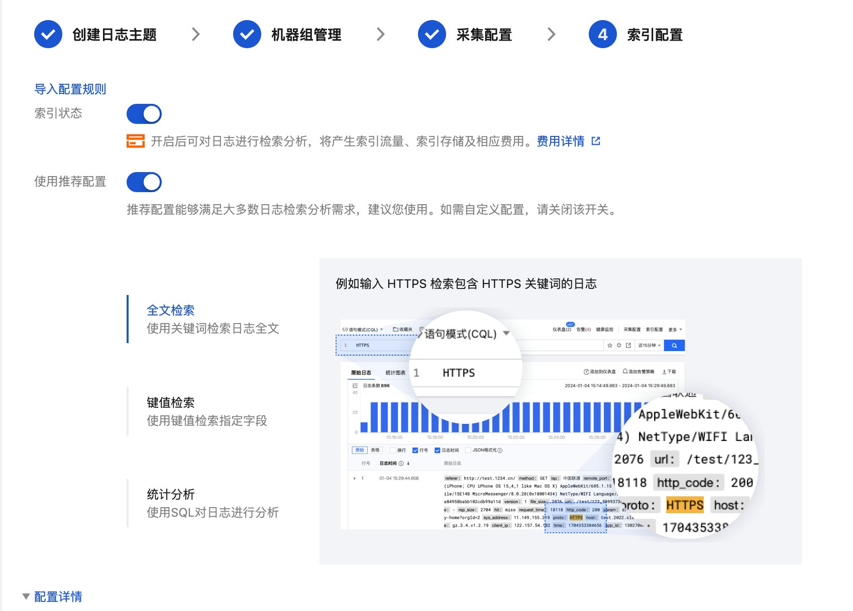 1. 单击下一步,进入“索引配置”页面。