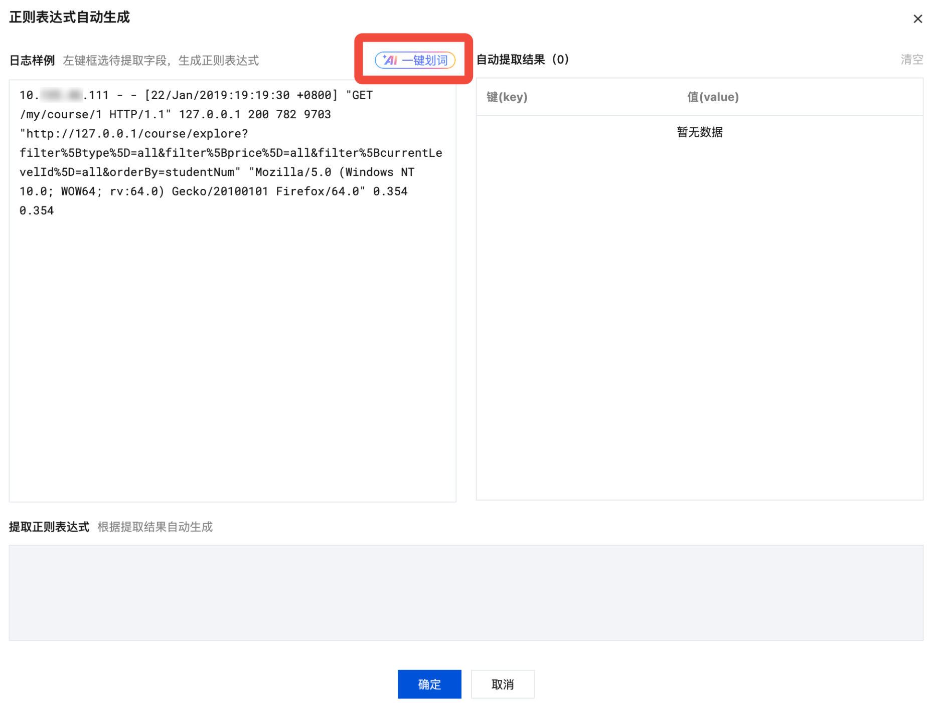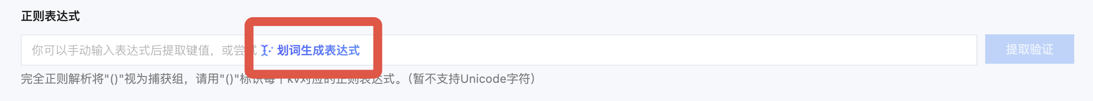 AI 划词模式:单击正则表达式中的划词生成表达式,然后再单击 AI 一键划词即可进入 AI 划词模式。