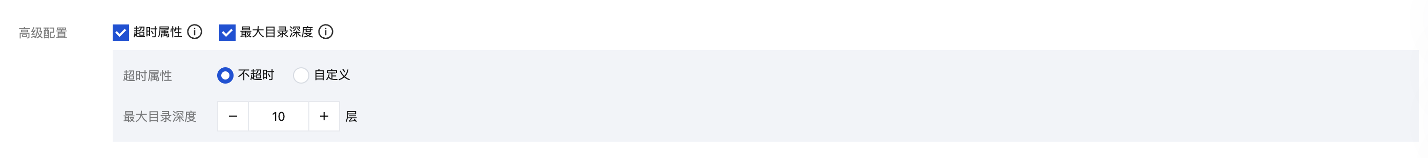 通过勾选,选择您需要定义的高级配置。