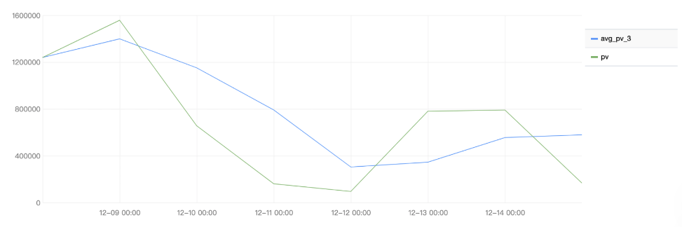 * | select avg(pv) over(order by analytic_time rows between 2 preceding and current row) as avg_pv_3,pv,analytic_time from (select histogram( cast(__TIMESTAMP__ as timestamp),interval 1 day) as analytic_time, count(*) as pv group by analytic_time order by analytic_time)