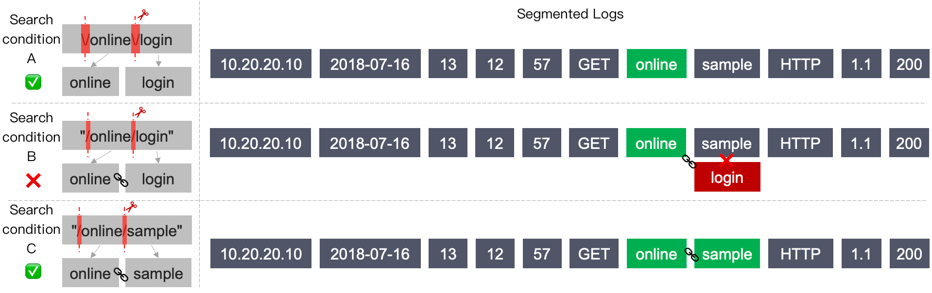 sample时,上述分词后的日志包含sample,即认为符合检索条件。