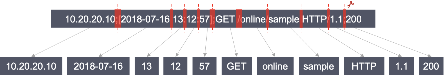 sample的如下完整日志:10.20.20.10;[2018-07-16 13:12:57];GET /online/sample HTTP/1.1;200