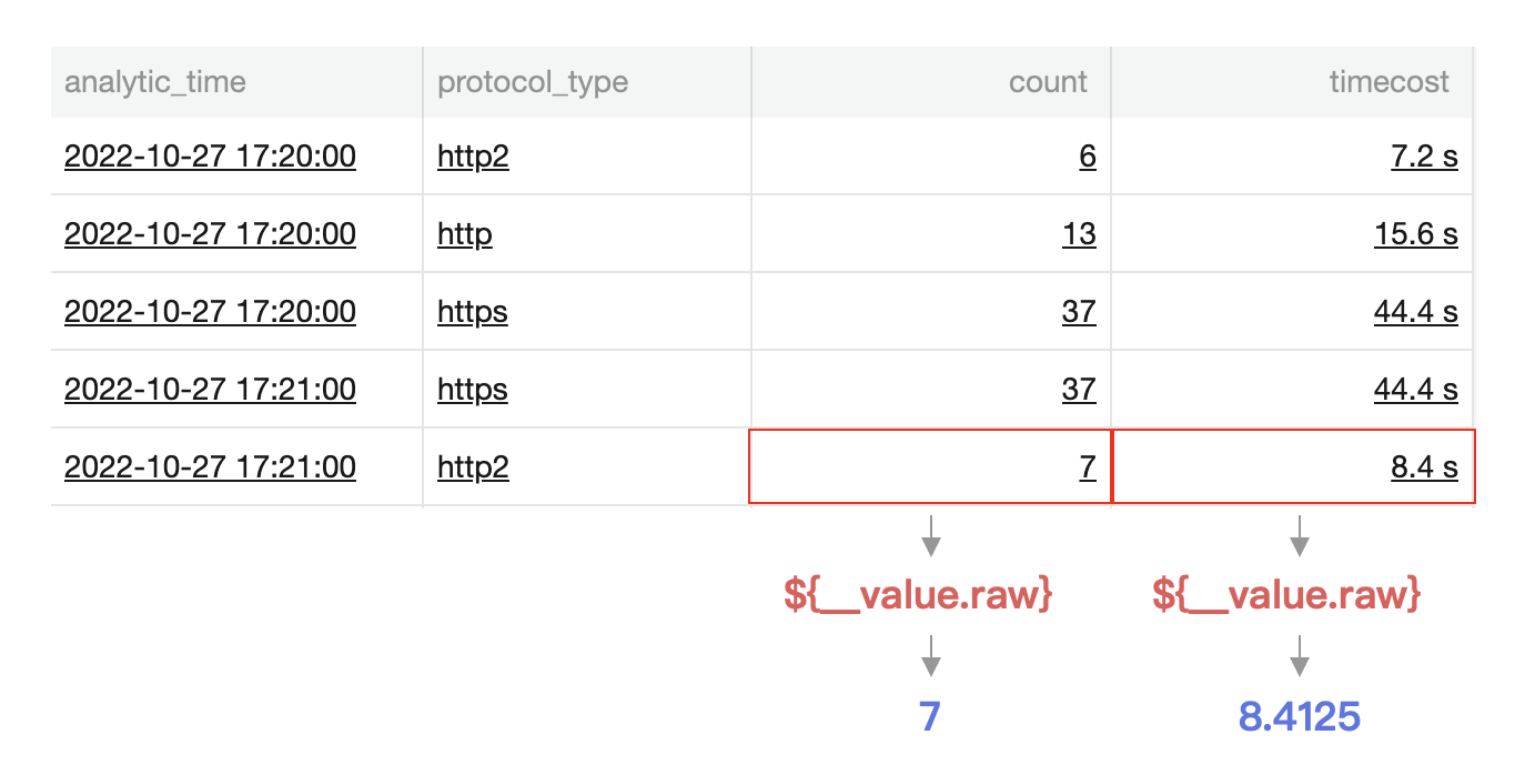 ${__value.raw} 引用被点击的值(以原始格式填充)。