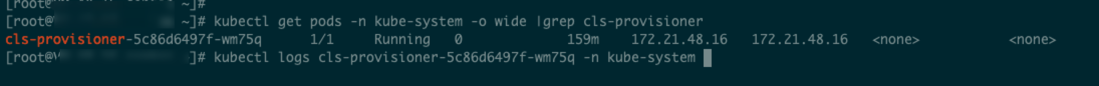 查看日志: kubectl logs cls-provisioner-xxx -n kube-system