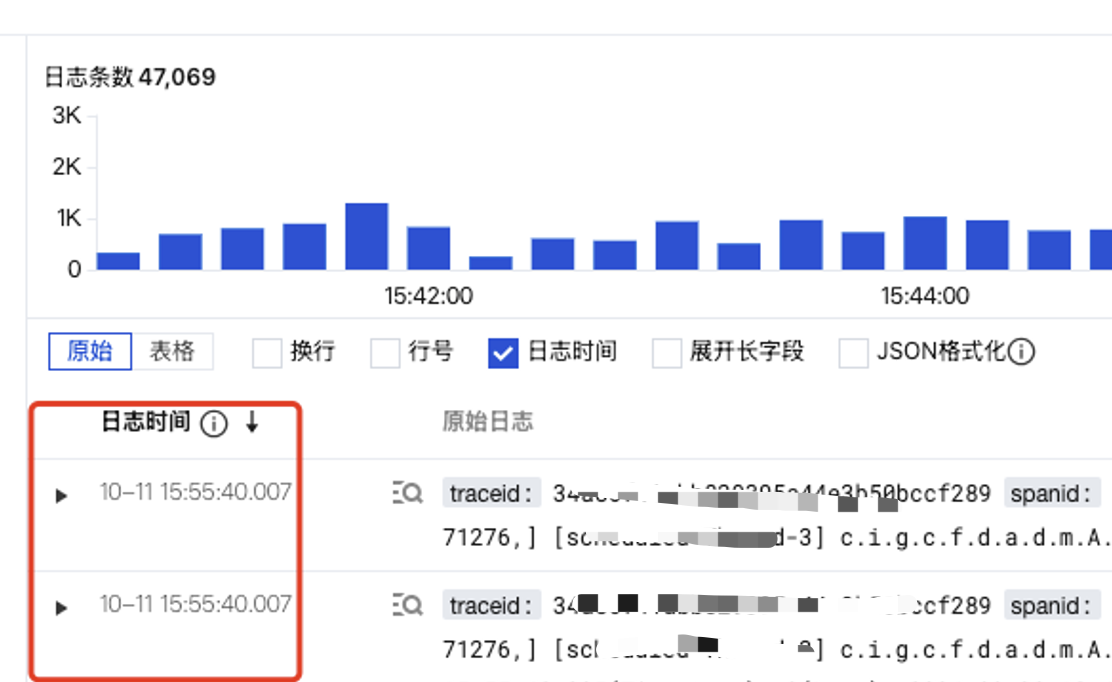 // 使用grok函数从日志中提取时间time,日志级别level,service,traceid和spanidext_grok("message",grok="%{TIMESTAMP_ISO8601:time} %{DATA:level} \\[%{DATA:service},%{DATA:traceid},%{DATA:spanid}\\]")//删除message字段fields_drop("message")// custom_cls_log_time函数,使用新字段time替换CLS的日志时间(__TIMESTAMP__)custom_cls_log_time(dt_to_timestamp(v("time"), zone="UTC+8"))